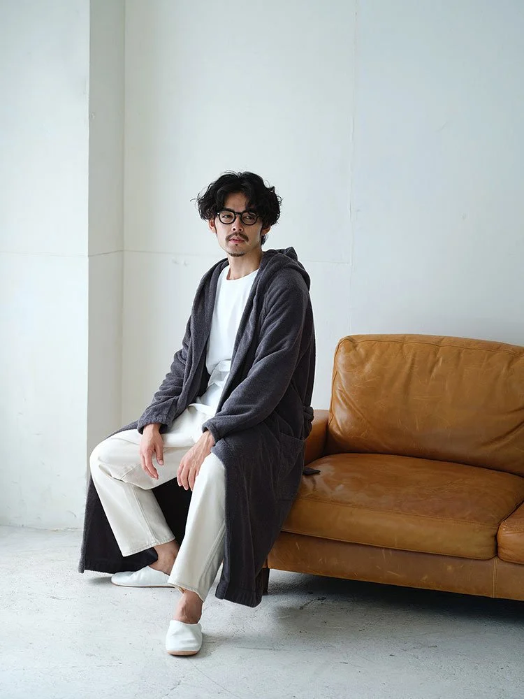 The uniqueness about this robe is its textile: the part of yarn has a hole in the middle and the length of pile is shorten from the original Yukine pile towel, so that it won’t be too heavy and can be dry as quickly as possible.