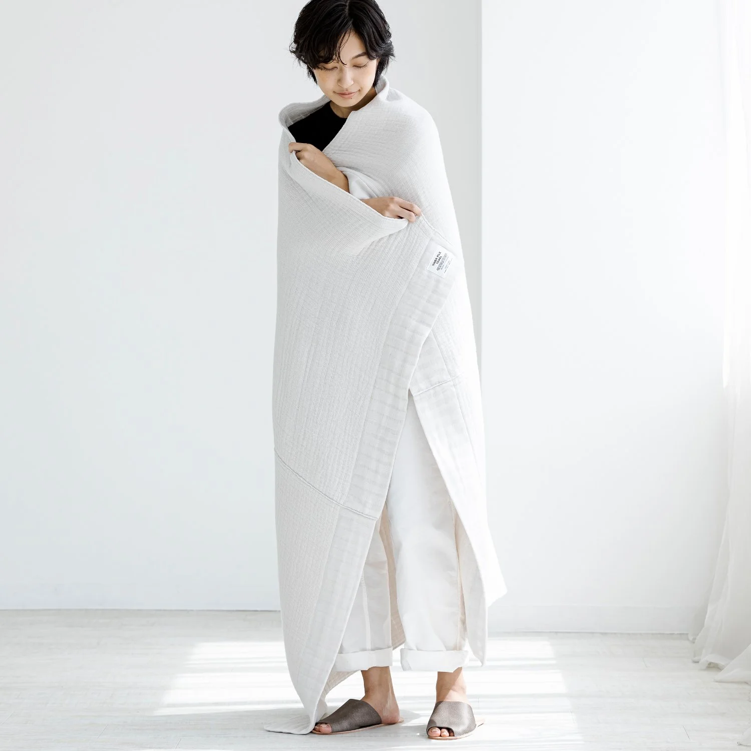 Two or three popular 2.5-PLY Gauze or Inner Pile textile of Shinto Towel are sewn together and became a very soft and comfortable Towelket.