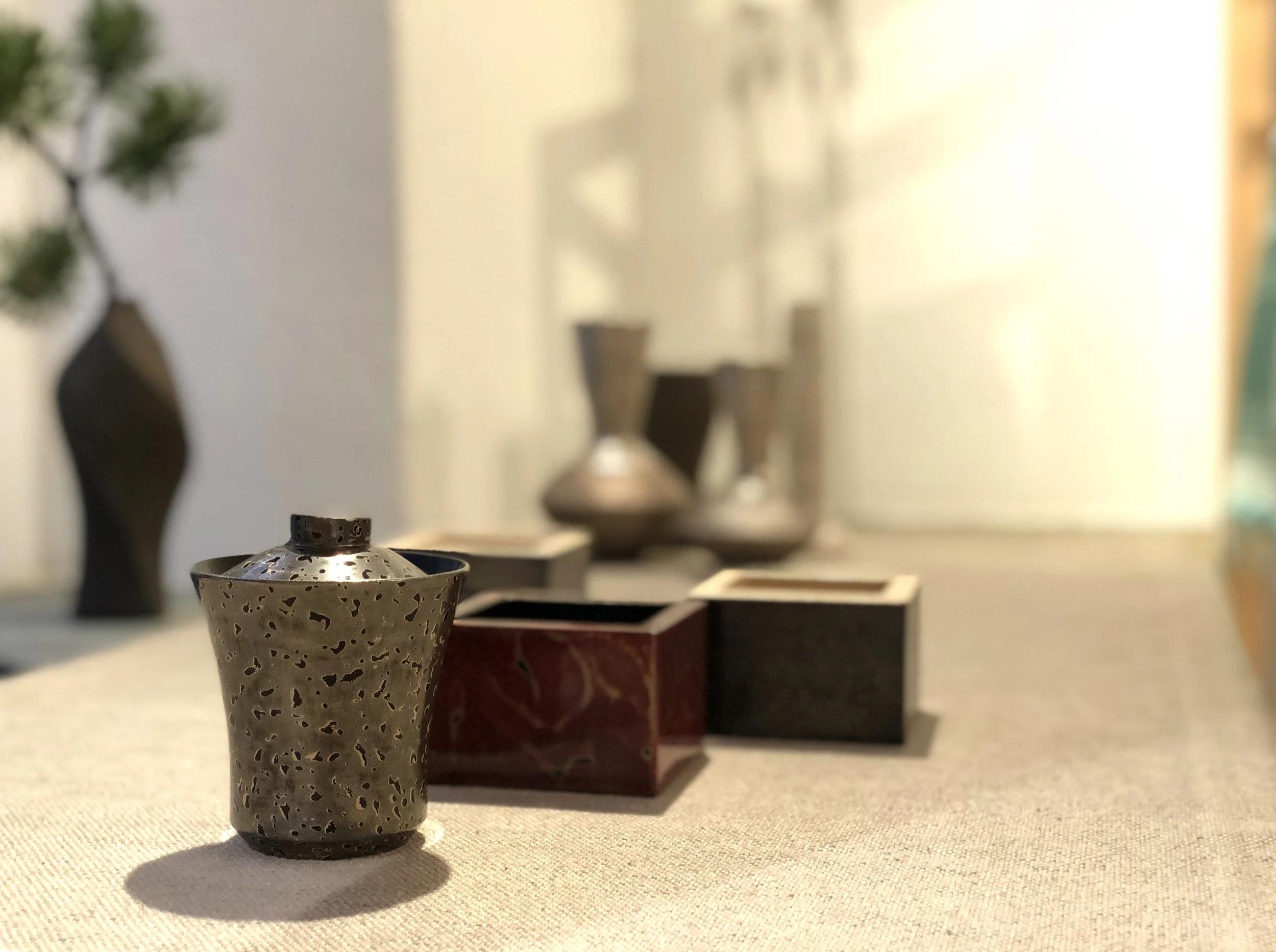 Item: tableware from Kawatsura-Urushi (Akita), tableware of Tsugaru-nuri (Aomori), two small cabinet of Sendai-Tansu (Miyagi), and one mini-cabinet made in the framework of Craft x Tech in the collaboration with Studio Swine (UK)